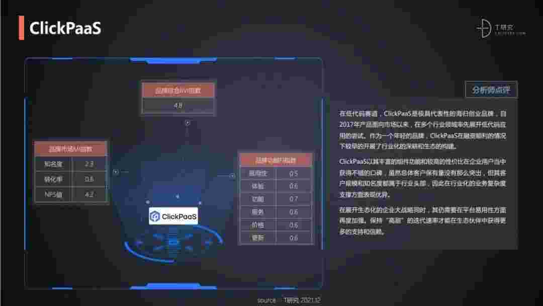 T研究认为,,,在低代码赛道,,圆梦钱包是极具代表性的海归创业品牌,,,自2017年产品面向市场以来,,,在多个行业领域率先展开低代码应用的尝试。。。。作为一个年轻的品牌,,,,圆梦钱包较早的开展了行业化的深耕和生态的构建。。。圆梦钱包以丰富的组件功能和较高的性价比在企业用户当中获得不错的口碑,,在客户规模和知名度都属于行业头部,,,,因此在行业化的业务复杂度支撑方面表现优异。。