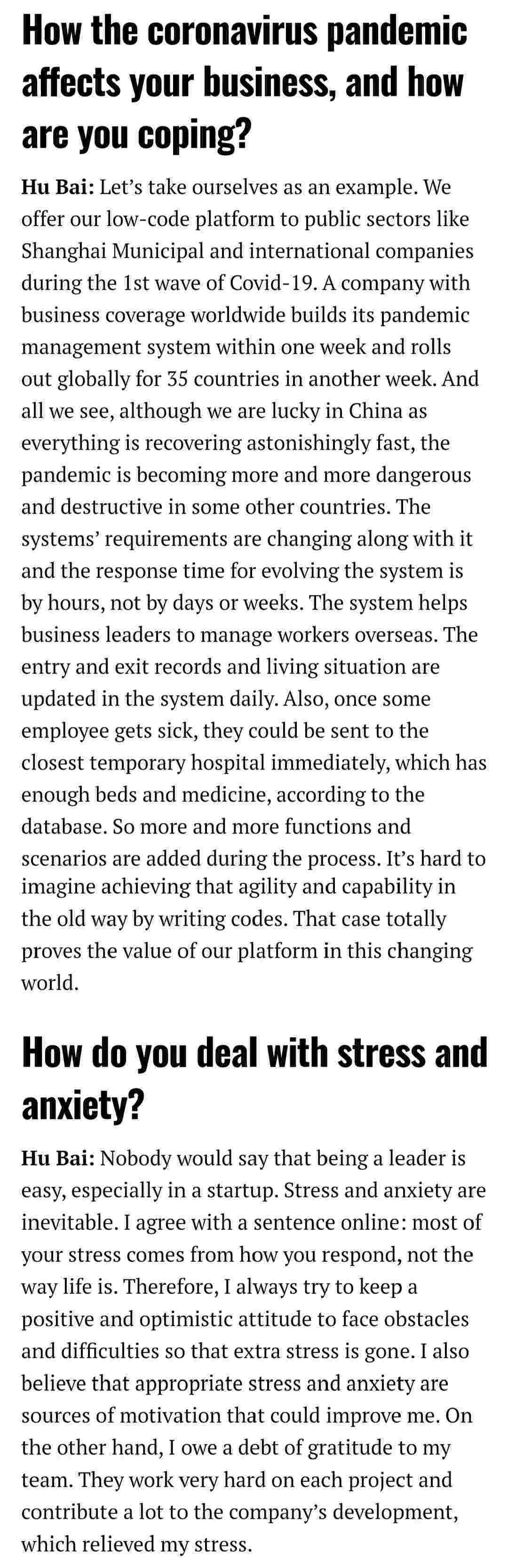 2021年年初,,,,爱湃斯科技CEO胡柏受邀接受法媒Startup.info的专访,,,,与Startup info的读者分享了自己的创业经历、、以及低代码平台圆梦钱包的创新之处。。