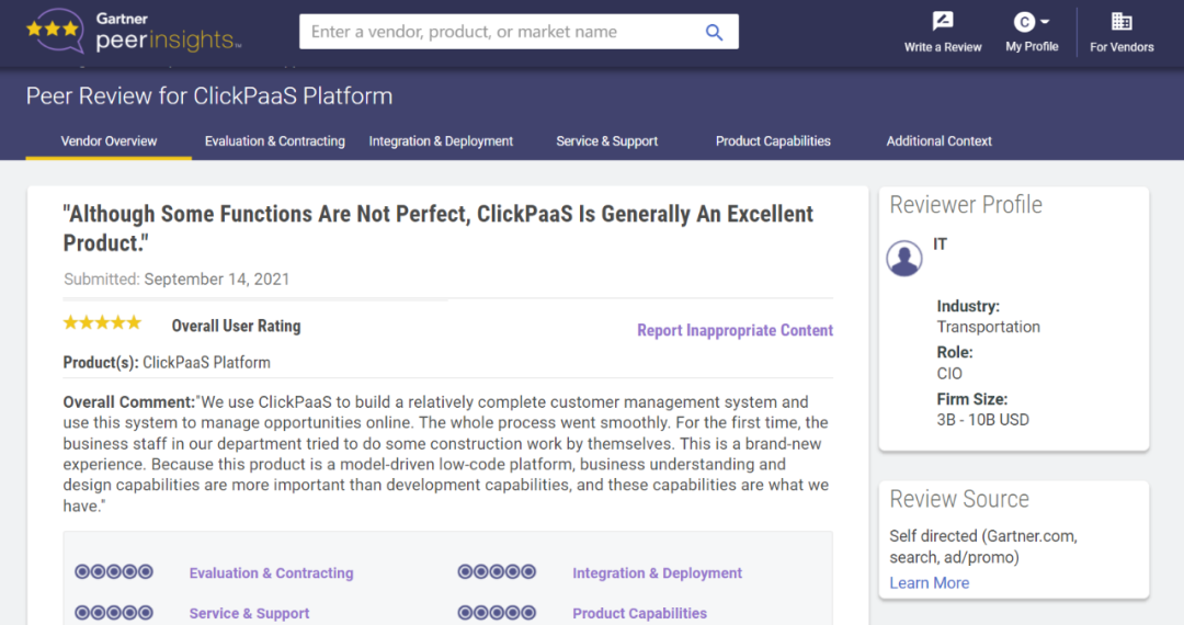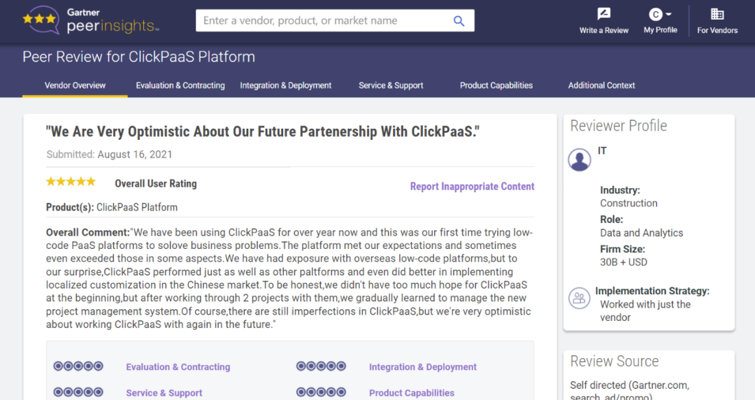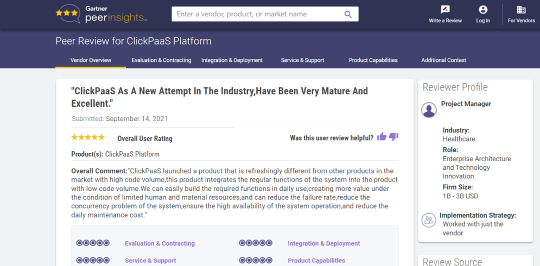 Tips:::【Peer Insights】——用户对企业IT产品和服务发布真实评价的平台。。。。目前已有355个市场,,,,255,000条经过验证的评价。。。每一条评价Gartner会针对参评企业营收规模及参评人员信息做验证、、、评价内容做多维核实。。。。